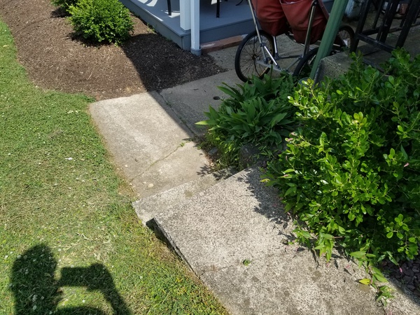 There are cracks and minor heaving at the walkway in multiple areas. Recommend repairing the walk to prevent further deterioration and trip hazards.
